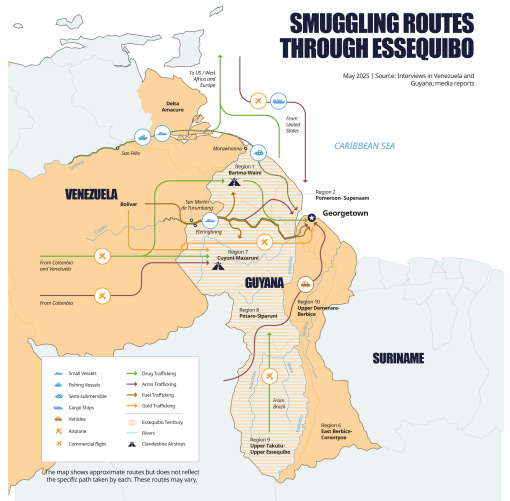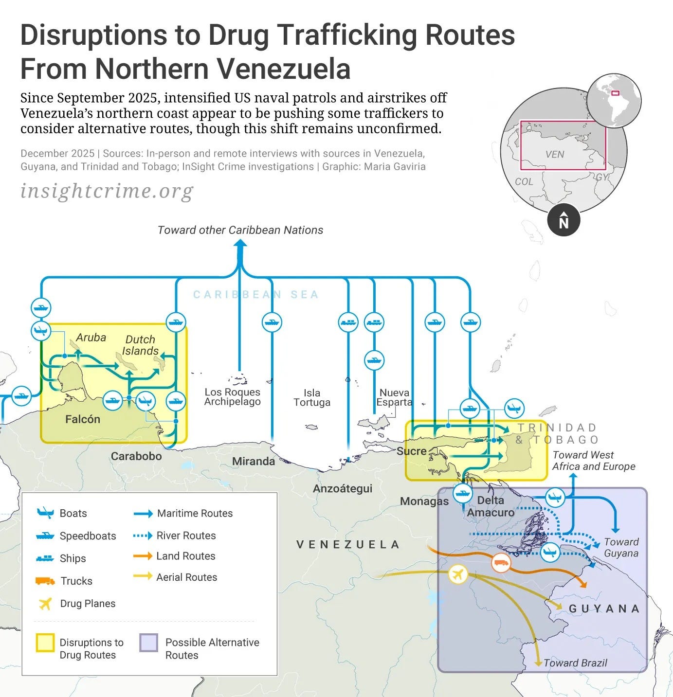 Insight Crime also notes that the disruption of those smuggling routes could be driving more cocaine trafficking from Venezuela into the Essequibo Territory of neighboring Guyana and Suriname.