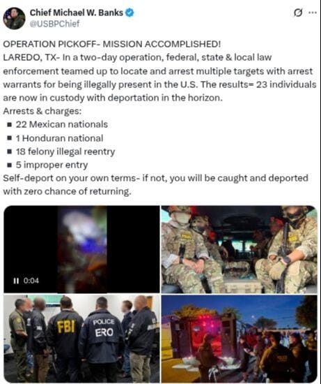 If anything, federal authorities stepped up border enforcement efforts to reinforce their message just ahead of the anticipated shutdown, including “Operation Pickoff“ that led to the arrest of 23 illegal aliens with arrest warrants in Laredo, Texas over two days this week.