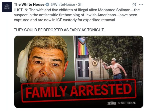 Thanks for covering a complex issue with the nuance it deserves. While learning about the guy's surgical procedure makes his behavior even more offensive, I agree that an ICE interview might be the best way to resolve the question of his family's loyalties. I also think Trump knows that it might be a slippery slope to follow the advice of people like Laura Loomer, for the same reason sensible Democrats should keep their own extremists at arm's length. And judging kids by the actions of their parents is a unreliable barometer. Trump's own siblings are a testament to that.