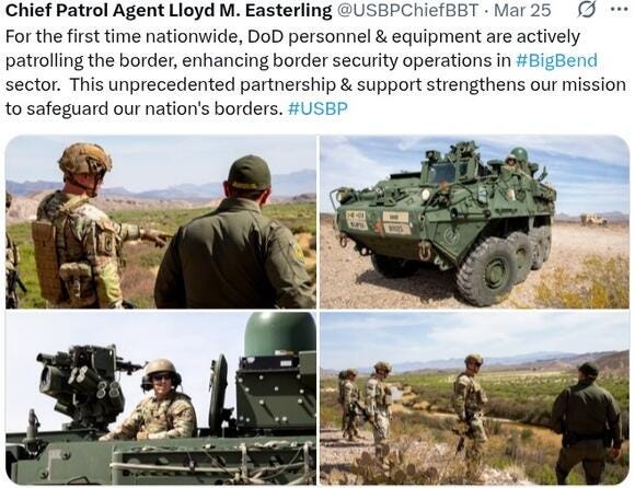 That’s why the Department of Defense stationed some of the first US Army “Stryker Crews” assigned to the Southern US Border Security Mission there last March, when President Trump first began militarizing the Southern Border: