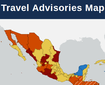 That advisory reminds Americans that the State Department advises against travel for any reason to five Mexican states (see map below).