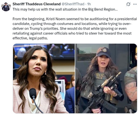 Sheriff Cleveland took to x.com not long after President Trump gave Noem the boot to say this: