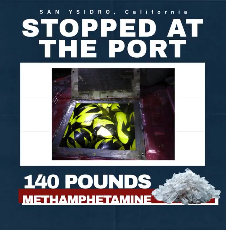 What follows are some snapshots of recent smuggling schemes US authorities have thwarted in recent days. As you review these, remember that US authorities and independent experts are generally in agreement that the amount of smuggled goods law enforcement seizes amounts to a single-digit percentage of what is coming across the border: