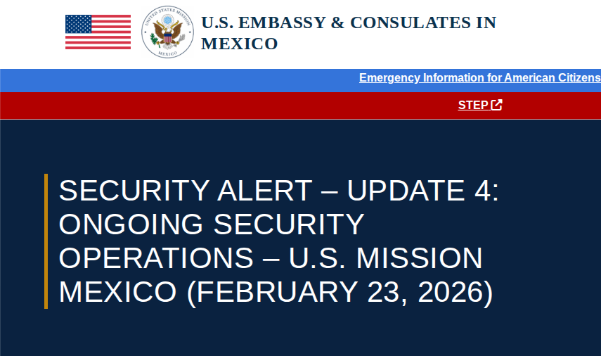 Security Alert – Update 4: Ongoing Security Operations – U.S. Mission Mexico (February 23, 2026)