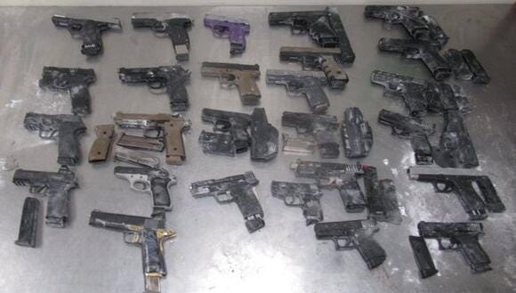 CBP officers discovered 13 weapons, 26 magazines, and 40 rounds of ammunition hidden in a car - part of a robust smuggling route from Texas to Mexico that arms the cartels some have dubbed the "river of iron."