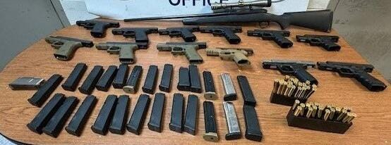 While checking a bus bound for Mexico CBP Officers found 26 weapons and 43 magazines of various calibers aboard the commercial vehicle. Homeland Security Investigations is following up on this seizure.