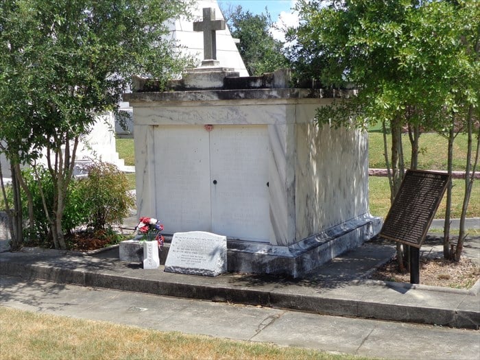 Hood is buried in a large marble crypt in New Orleans which includes a marble plaque and a bronze marker memorializing his service to the Confederacy.