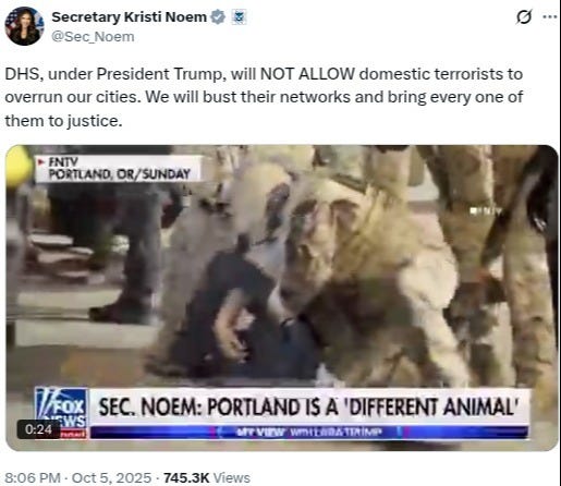Despite that, DHS Secretary Kristi Noem signalled later that night that the Trump Administration would contest those court orders by posting a video of arrests at the Portland ICE protests along with a vow that the DHS “will NOT ALLOW domestic terrorists to overrun our cities.”