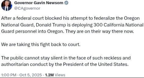And, since California’s Governor did not approve of his National Guard troops being deployed to Oregon, he sued as well: