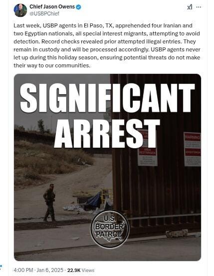 DPS will work with federal agencies to identify, locate, and assess potential threats from "Special Interest Migrants" on the Terrorism Watch List. Six on the terror watch list (including four Iranians) were arrested by Border Patrol Agents in El Paso last week: