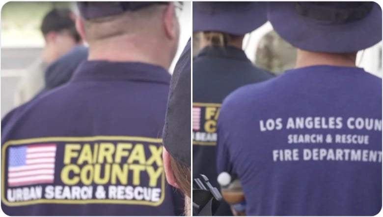 In addition to specialized rescue equipment, the teams came with K-9s to help search for victims trapped under rubble.